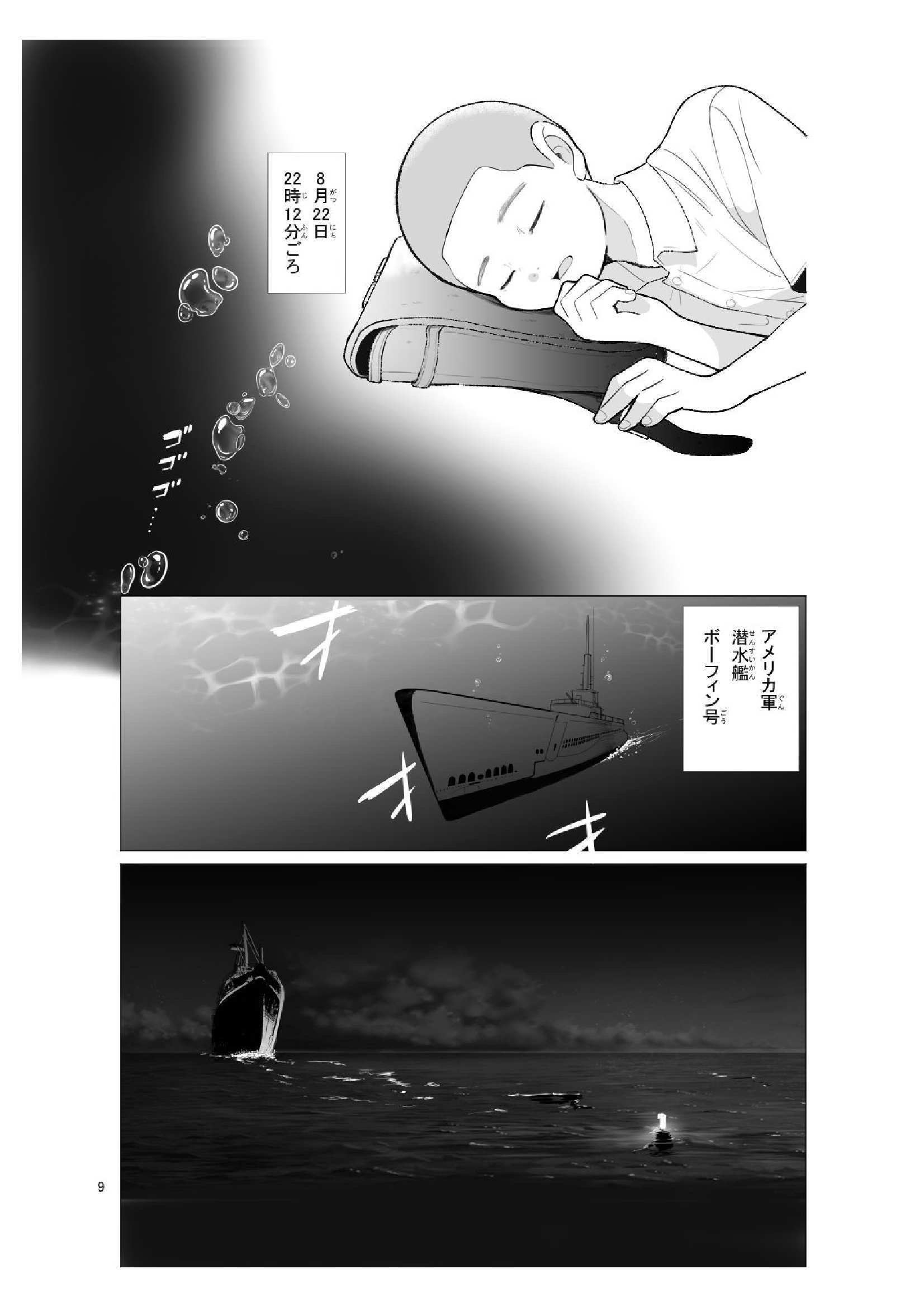 沖縄戦が始まる前の1944年8月に起こった、学童疎開船「対馬丸」が攻撃を受けて沈没した「対馬丸事件」を題材にしています。実際の対馬丸に乗船していた、当時10歳だった喜屋武 盛宜(きやたけ もりよし)さんが体験したことを基に漫画化しています。
